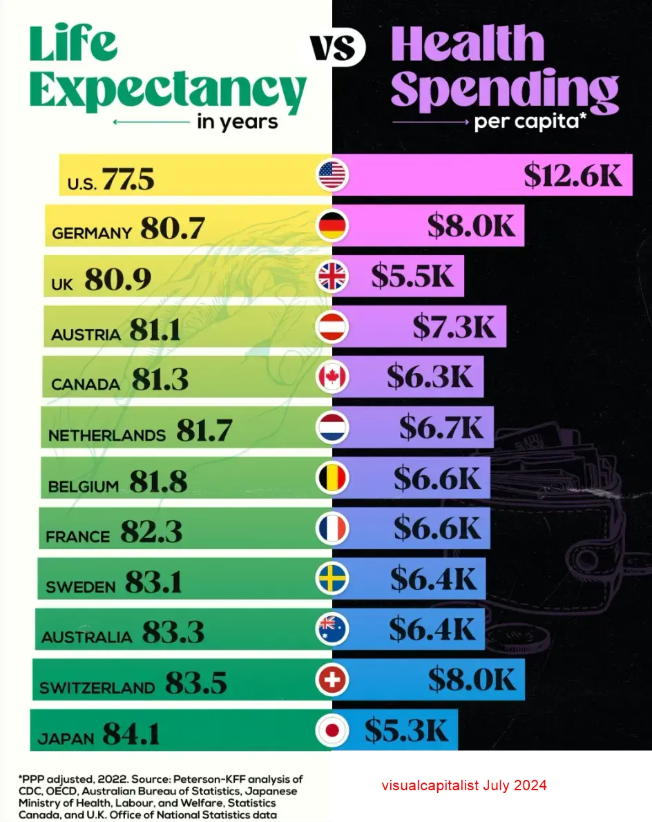 Life Expectancy vs Health Spending - July 2024
