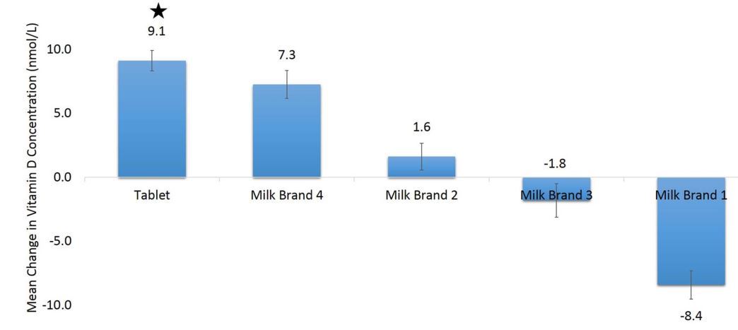 2 out of 4 of the milk brands decreased the Vitamin D levels