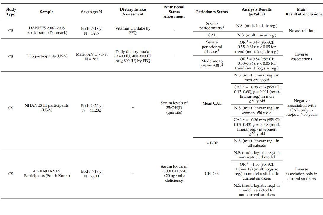 - Poor Periodontal associated with low vitamin D in 65 percent of cross-sectional studies – review March 2018