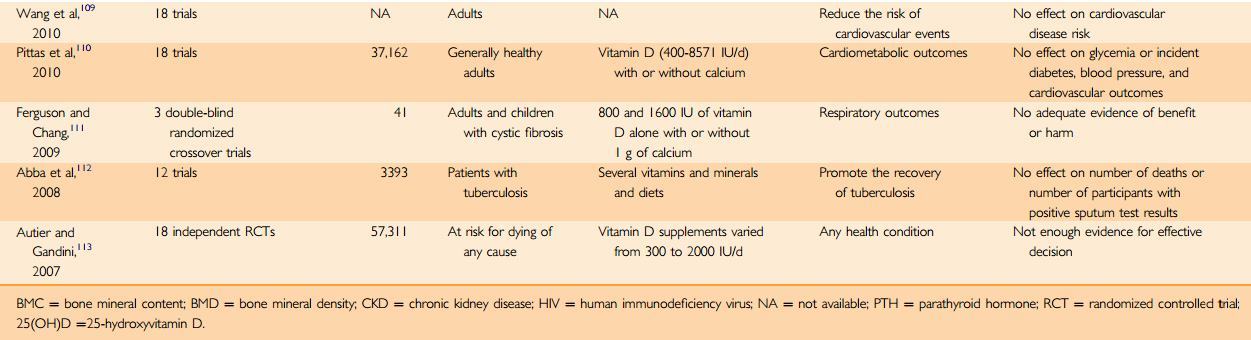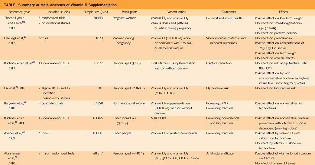 TABLE. Summary of Meta-analyses of Vitamin D Supplementation