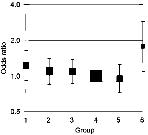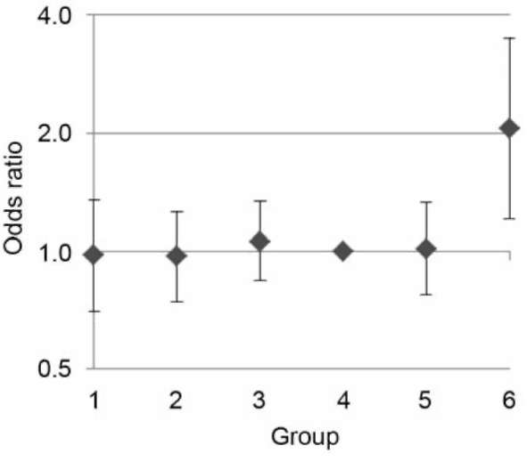 Figure 3. Odds ratios when the two highest groups are combined – (seeTable II)