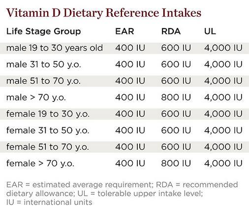 A report by the Institute of Medicine (IOM) in November 20107 reviewed the dietary reference intakes (DRI), the first since the 1997-2004 DRIs. The DRIs include statistical components of distribution. Estimated average requirement (EAR) reflects the estimated median requirement. Recommended dietary allowance (RDA) is derived from the EAR and meets or exceeds the requirement for 97.5% of the population. Tolerable upper intake level (UL) is the highest average daily intake that is likely to pose no risk of adverse effects to almost all individuals in the general population. As intake increases above this, the potential risk of adverse effects may increase.