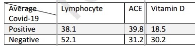 COVID Test Positive associated with higher ACE and lower Vitamin D