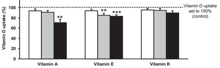 High dose Vitamin A (black bar) reduces the uptake of Vitamin D