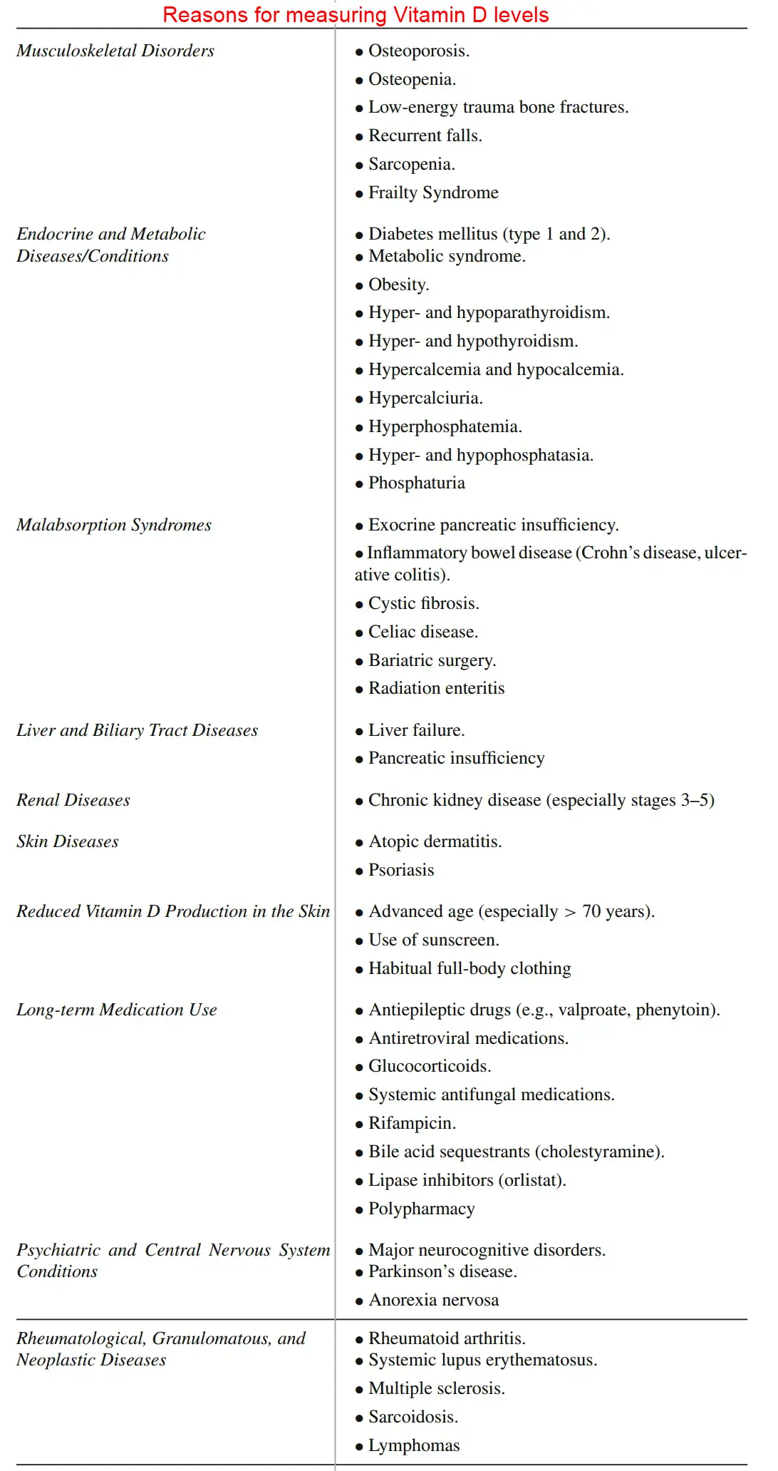 Results: Key recommendations include: Measuring 25(OH)D levels in adults with risk factors or conditions associated with hypovitaminosis D, avoiding routine screening in healthy individuals. Defining vitamin D deficiency as < 20 ng/mL, insufficiency as 20-29 ng/mL, and sufficiency as 30-100 ng/mL. Preferring cholecalciferol for supplementation, with calcifediol reserved for specific cases requiring rapid correction or compromised hepatic hydroxylation. Regularly monitor serum 25(OH)D concentrations to achieve and maintain levels between 30 and 60 ng/mL, ensuring safety and therapeutic efficacy.