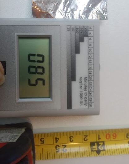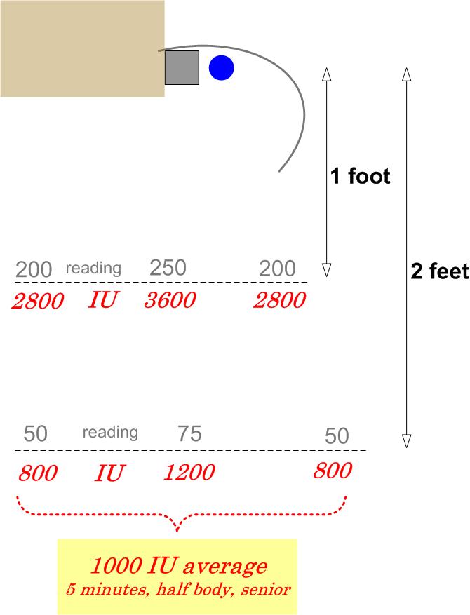1000 IU @ 2 feet 5 minutes using Solar Meter converter