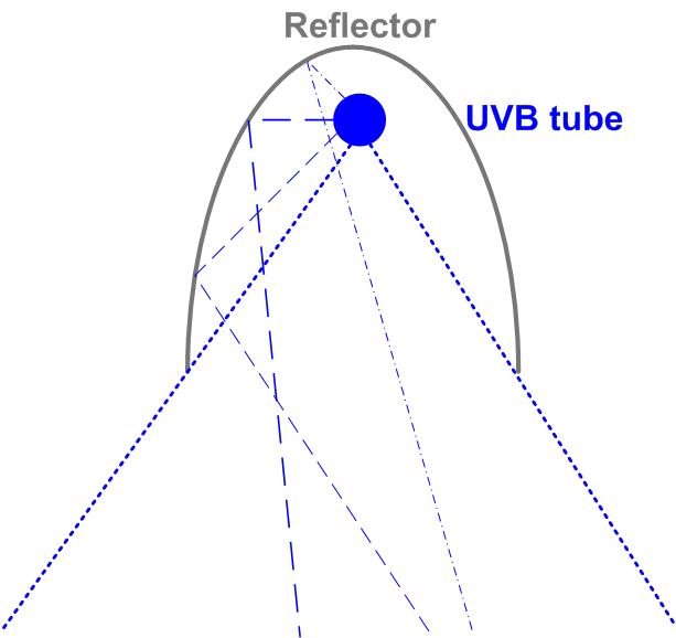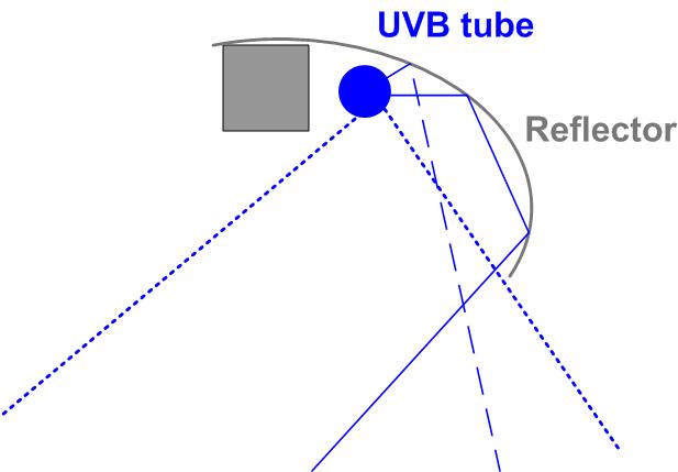 Note: Cannot use a mirror to increase intensity as the glass in the mirror absorbs UVB
