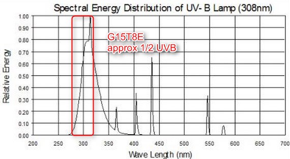 - UVB bulbs were measured at a distance where they where they had an intensity of 100 µW/cm² of total UVB