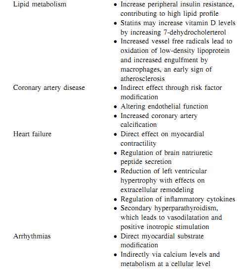 Vitamin D deficiency was associated with several cardiovascular-related diseases, including