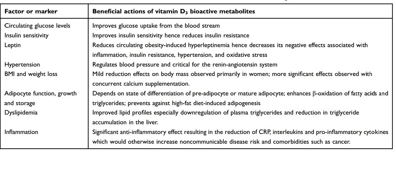 Then, vitamin D3 supplementation appears to be a potentially suitable cost-effective preventive and therapeutic agent that should be considered for all individuals, and especially in obese patients or those diagnosed with established metabolic syndrome risk factors to improve health outcomes and survival.