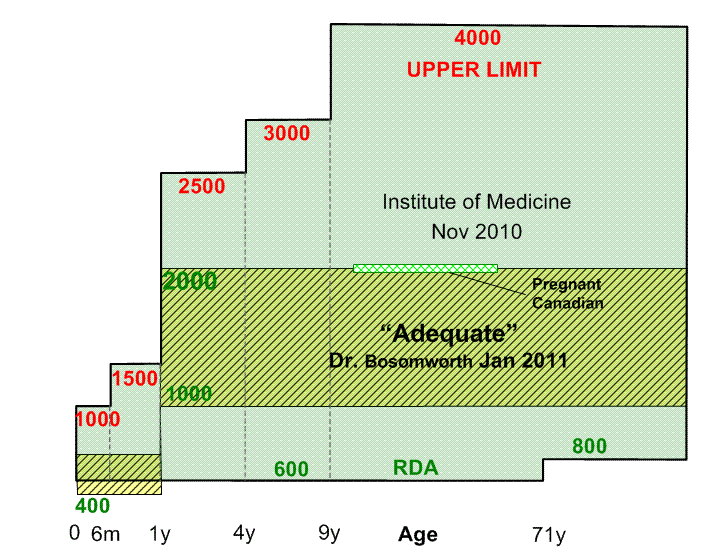 These recommendations can be safely made for individual patients.The Institute of Medicine recommendations are made on a population, rather than an individual basis. Such recommendations tend to be conservative, and rigidly evidence-based. As you know, the evidence is often lacking because there is no money to be made in marketing Vit D. Since there is very little toxicity, there is no down side to recommending what most of us regard as adequate doses, but that seems to be the way the system works with the IOM. I was particularly troubled that Canada adopted the same recommendations, given our additional latitude handicap. Still - a small improvement in the right direction. Unlikely that we will notice any benefit on a population basis - or that anyone will undertake a decent study to measure that benefit.