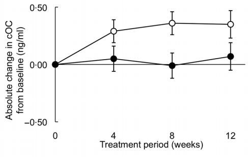 The yogurt drink was also fortified with n-3 PUFA, vitamin D, vitamin C, Ca and Mg to support vascular and/or general health. Healthy men (n 32) and postmenopausal women (n 28) with a mean age of 56 (sd 5) years received either basic or fortified yogurt drink twice per d for 12 weeks. MK-7 was efficiently absorbed from the fortified yogurt drink. Levels of circulating MK-7 were significantly increased from 0·28 to 1·94 ng/ml. In accordance, intake of the fortified yogurt drink improved vitamin K status, as measured by significant decreases in uncarboxylated osteocalcin and desphospho-uncarboxylated matrix Gla-protein.