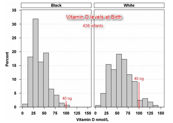 Vitamin D at birth black vs white VDW# 7463 http://vitamindwiki.com/tiki-index.php?page_id=7463 |