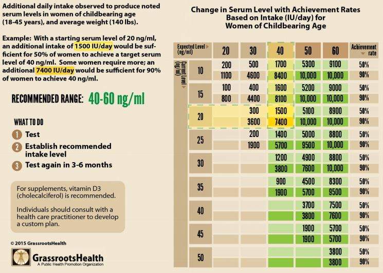 How much Vitamin D for 140 lb woman 50% vs 90% chance of goal http://vitamindwiki.com/tiki-index.php?page_id=6896 |