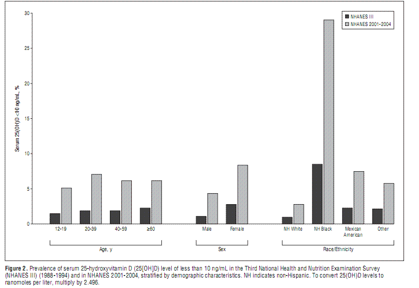 23. Far more vitamin D deficiency US NHANES 2004 vs previous - chart 2009