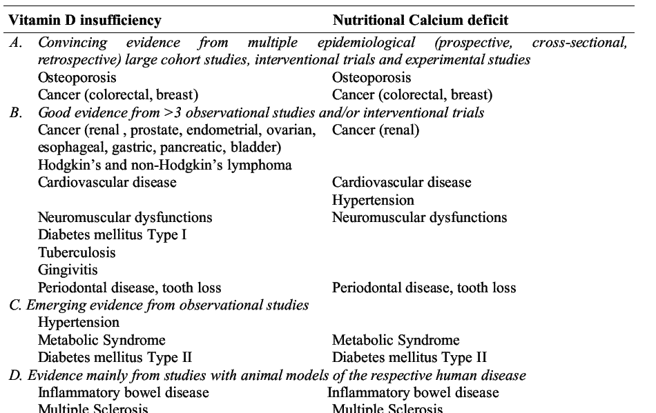 19. Evidence of lack of vitamin D and Calcium causes chronic disease