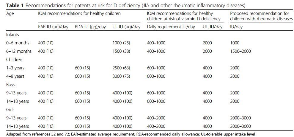 - Juvenile Rheumatoid Arthritis associated with low vitamin D, but how low – meta-analysis Jan 2013