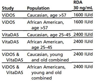 - Even taking as much as 4200 IU vitamin D 43 percent had less than 30 ng in blood – RCT Jan 2013