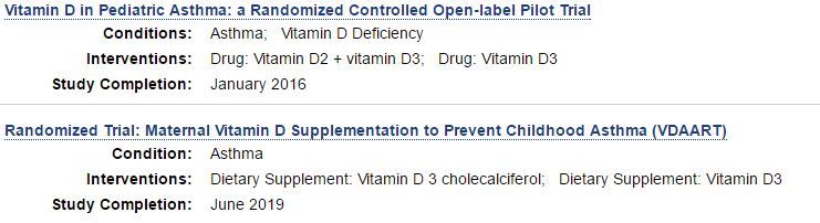 40 Asthma US clinical trials (give vitamin D and see what happens) - August 2016