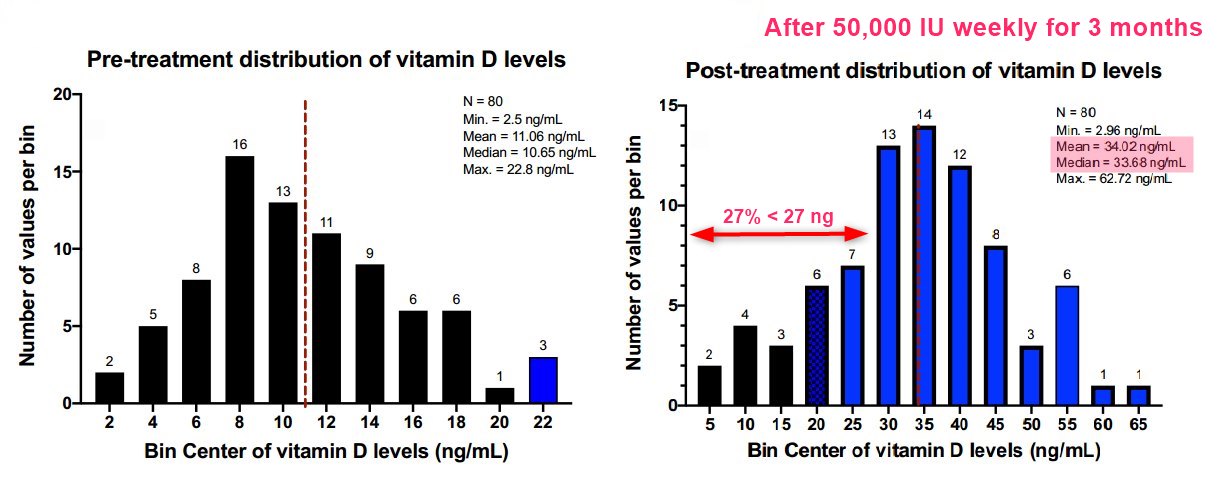 Note: 34% had high BMI - so would would have needed more than 50,000 IU