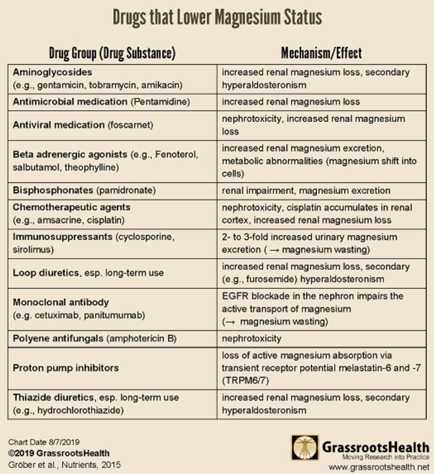 - a higher likelihood of chronic diseases with age also increases the chance of taking a medication that can interfere with magnesium absorption and utilization (see below)