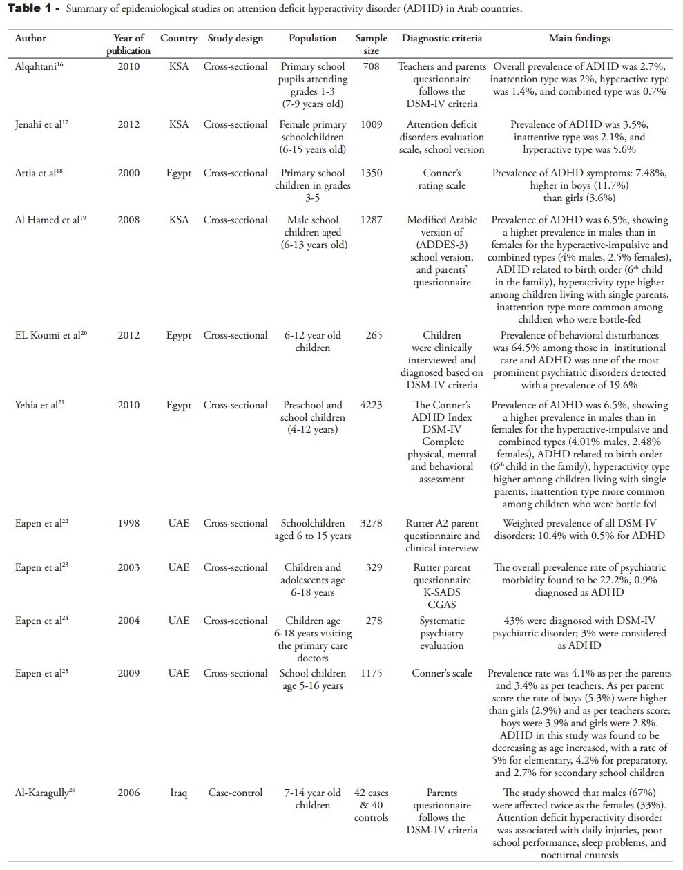 Systematic review of the epidemiology of attention deficit hyperactivity disorder in Arab countries.
