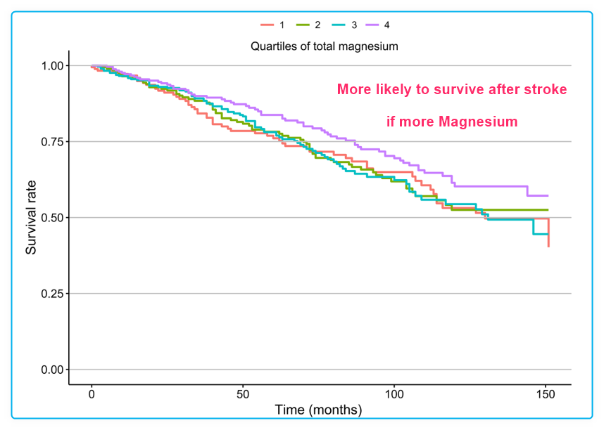 Stroke survivors who consumed adequate amounts of magnesium from diet and supplements had a lower risk of all-cause mortality.