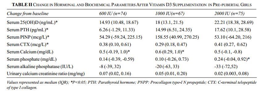 Objective: To compare the adequacy and efficacy of different doses of vitamin D3 in pre-pubertal girls.