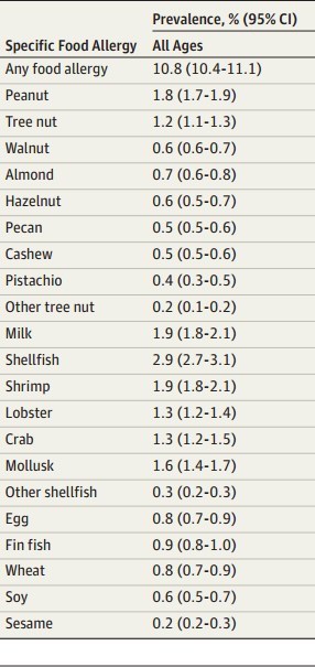 Prevalence and Severity of Food Allergies Among US Adults - JAMA