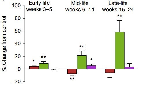 Early-life PAT accelerates total mass and bone growth, and causes progressive changes in gut microbiome diversity, population structure and metagenomic content, with microbiome effects dependent on the number of courses and class of antibiotic. Whereas control microbiota rapidly adapts to a change in diet, PAT slows the ecological progression, with delays lasting several months with previous macrolide exposure. This study identifies key markers of disturbance and recovery, which may help provide therapeutic targets for microbiota restoration following antibiotic treatment.