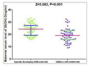 - Maternal 25(OH) D in autistic group lower than in typically-developing group
