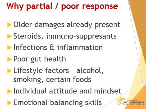 0:34:21.6 Dr. Mahtani: So remaining people get partial relief. It's not that it is zero benefit to anyone. Some or the other relief comes and well, what is the worst that can happen on this therapy? No benefit, alright, but one can control the progression of the problem. One can control the reoccurrences, the frequency, the intensity, because we all know that autoimmune diseases have a waxing and waning nature. Anytime there's stress, we breakout. Well, the stress immediately affects the immune system, we can manifest the problem. But the frequency, intensity comes down, or completely in control, if the vitamin D levels are maintained and optimized. All this is scientific, but it also involves an art, which honestly, this grooming in medicine, internal medicine is an art actually because every patient is different. Every human being is different. There is no black and white in human body, lots of gray zones.