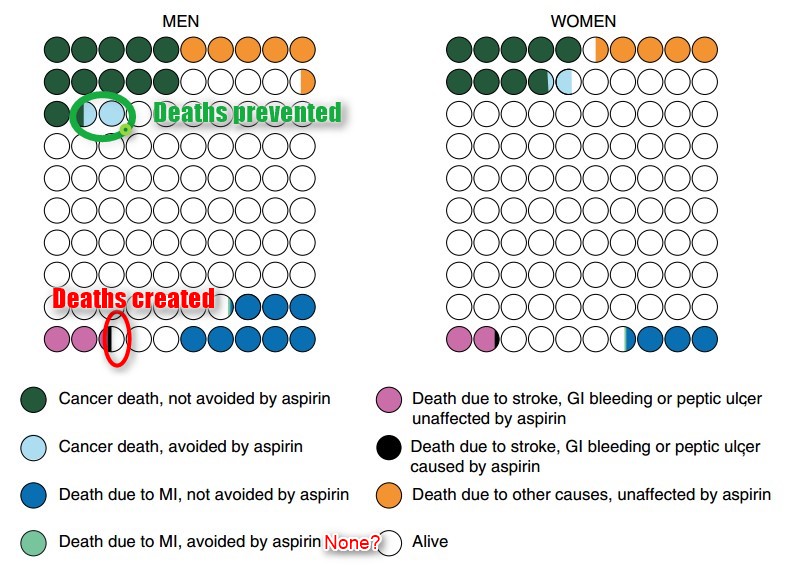 Nothing about non-deadly problems due to taking aspirin - such as serious gastrointestinal bleeding