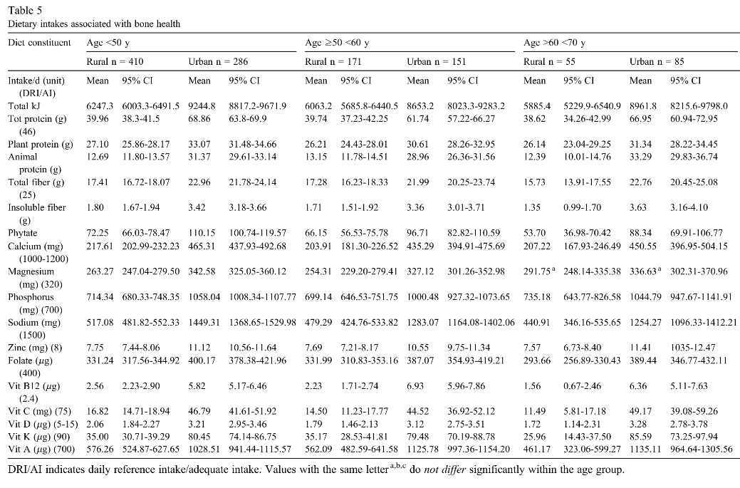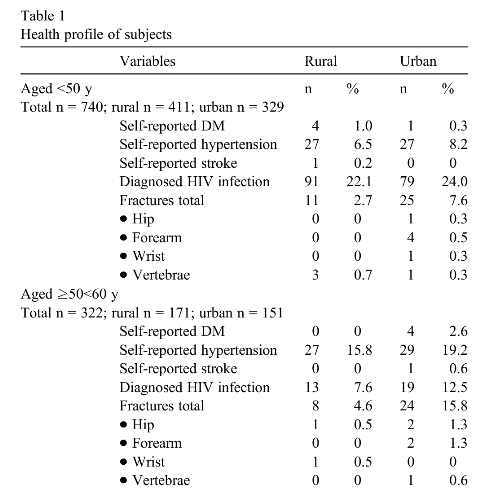 Globally, rural to urban migration is accompanied by changes in dietary patterns and lifestyle that have serious health implications, including development of low bone mass. We hypothesized that serum 25 (OH) vitamin D3 (25[OH]D3) levels will be lower, bone turnover higher, and nutrition inadequate in urban postmenopausal black women, increasing risk for low bone mass.