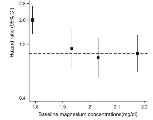 "Of the 22 men who had excess serum magnesium concentrations at baseline, none of them experienced a fracture at follow-up; "