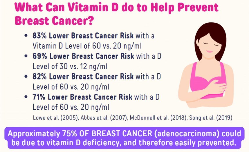 - Vitamin D reduces the risk of Breast Cancer, improves treatment, and improves survival
