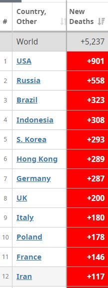 Worldometers - Daily COVID DEATHS as of March 15, 2022
