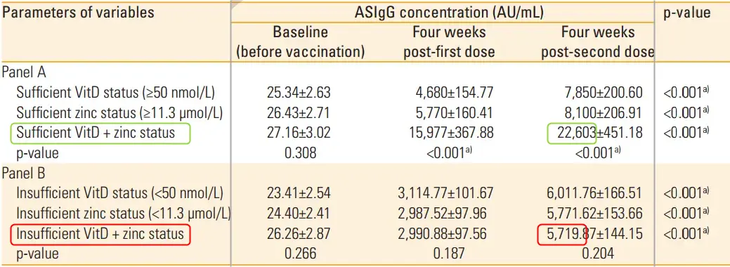 VitD and zinc sufficiency had a positive impact on immune responses following AstraZeneca COVID-19 vaccination.