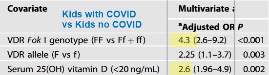 - COVID kids were more likely to have a poor VDR (4.3 X), than low Vitamin D (2.6 X) – Sept 2022