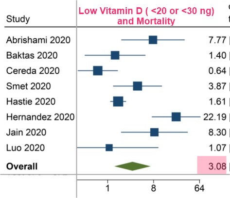 - Low Vitamin D associated 1.8X increased risk of COVID-19 death in hospital – meta-analysis Nov 4, 2020