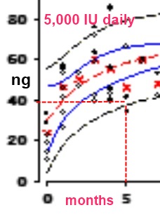 It takes 5 months to get more virtually everyone to 40 ng with 5,000 IU