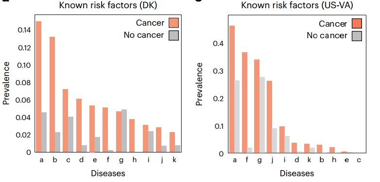 Nature Medicine (2023) https://doi.org/10.1038/s41591-023-02332-5Pancreatic cancer is an aggressive disease that typically presents late with poor outcomes, indicating a pronounced need for early detection. In this study, we applied artificial intelligence methods to clinical data from 6 million patients (24,000 pancreatic cancer cases) in Denmark (Danish National Patient Registry (DNPR)) and from 3 million patients (3,900 cases) in the United States (US Veterans Affairs (US-VA)). We trained machine learning models on the sequence of disease codes in clinical histories and tested prediction of cancer occurrence within incremental time windows (CancerRiskNet). For cancer occurrence within 36 months, the performance of the best DNPR model has area under the receiver operating characteristic (AUROC) curve = 0.88 and decreases to AUROC (3m) = 0.83 when disease events within 3 months before cancer diagnosis are excluded from training, with an estimated relative risk of 59 for 1,000 highest-risk patients older than age 50 years. Cross-application of the Danish model to US-VA data had lower performance (AUROC = 0.71), and retraining was needed to improve performance (AUROC = 0.78, AUROC (3m) = 0.76). These results improve the ability to design realistic surveillance programs for patients at elevated risk, potentially benefiting lifespan and quality of life by early detection of this aggressive cancer.