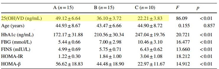 - group A, 25(OH)VD ≥ 40 ng/mL;