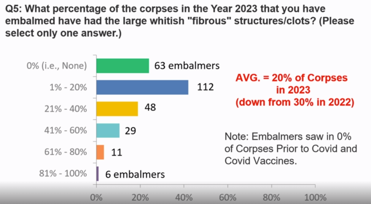 Corpses with fiberous clots: 0% before COVID, 30% in 2022, 20% in 2023Printer Friendly Follow this page for updates809 visitors, last modified 25 Aug, 2025, This page is in the following categories (# of items in each category)