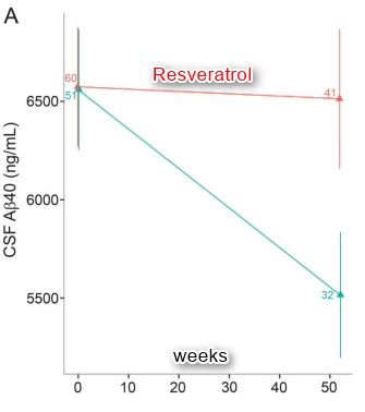 Results: Resveratrol and its major metabolites were measurable in plasma and CSF. The most common adverse events were nausea, diarrhea, and weight loss. CSF Ab40 and plasma Ab40 levels declined more in the placebo group than the resveratrol-treated group, resulting in a significant difference at week 52. Brain volume loss was increased by resveratrol treatment compared to placebo.