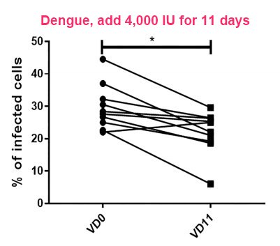 Increased Vitamin D receptor activation reduced Dengue cells 2X to 3X - July 2020