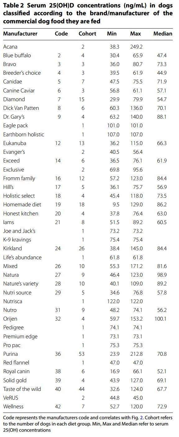 Huge differences in vitamin D levels after eating different brands of dog food