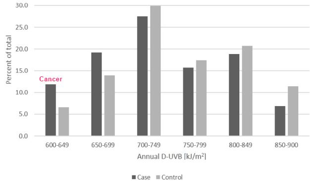 Annual Ambient UVB at Wavelengths that Induce Vitamin D Synthesis is Associated with Reduced Esophageal and Gastric Cancer Risk: A Nested Case-Control Study