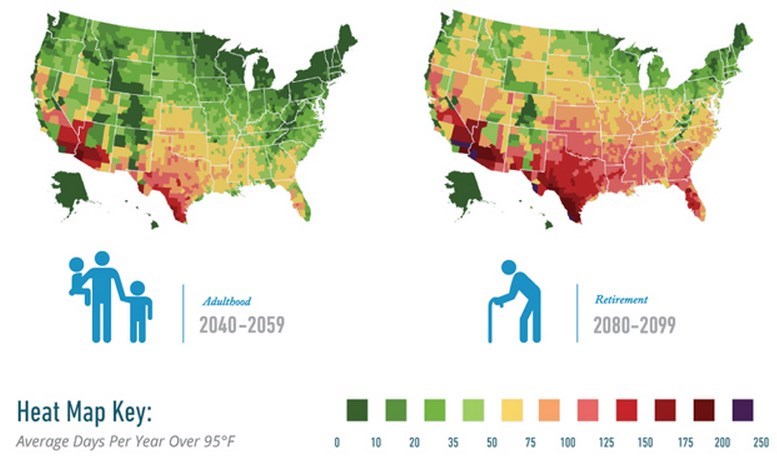Many places in the Southern US will have 95+ degree days for more than 4 months/year