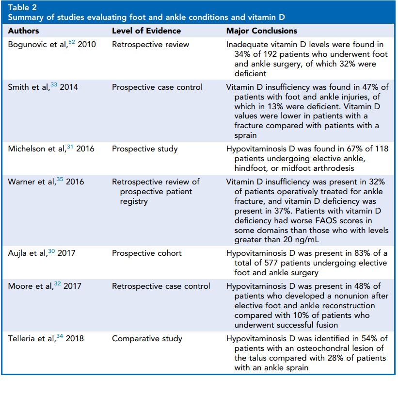 Table 2 Summary of studies evaluating foot and ankle conditions and vitamin D
